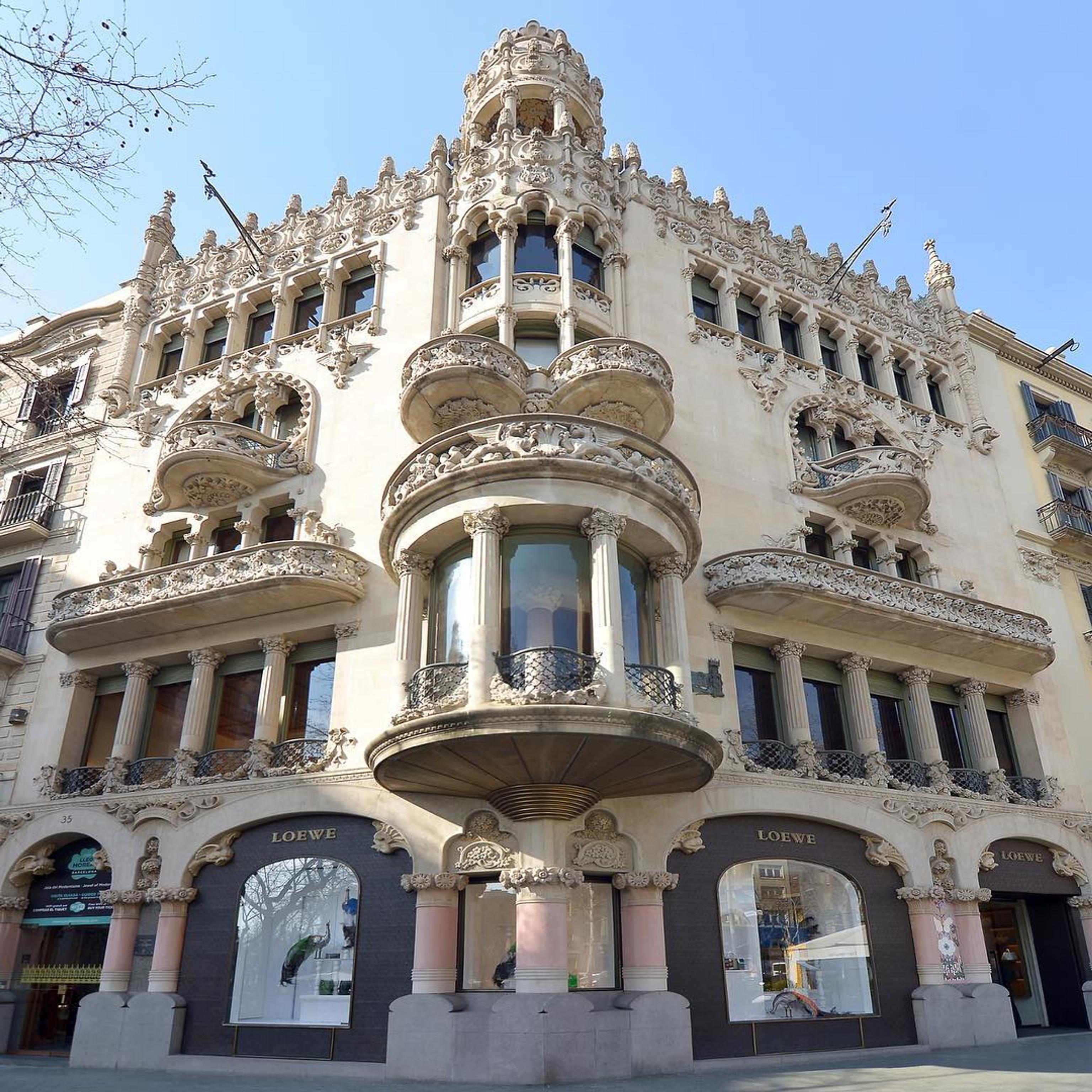 The unique building thus suited the environment in which it was located, a Paseo de Gracia where splendor extends not only to the buildings but also to its shops, where the most famous, most exclusive boutiques begin to settle, attracting tourists who gaze at the window displays and wander proudly, as the bourgeoisie did a century ago, flaunting bags from Armani, Chanel, Tiffany's, Stella McCartney, Saint Laurent, and the emblematic Santa Eulalia which has remained in family hands since 1843, now owned by Luis Sans, or from Loewe, precisely in the premises of Casa Lleó i Morera.