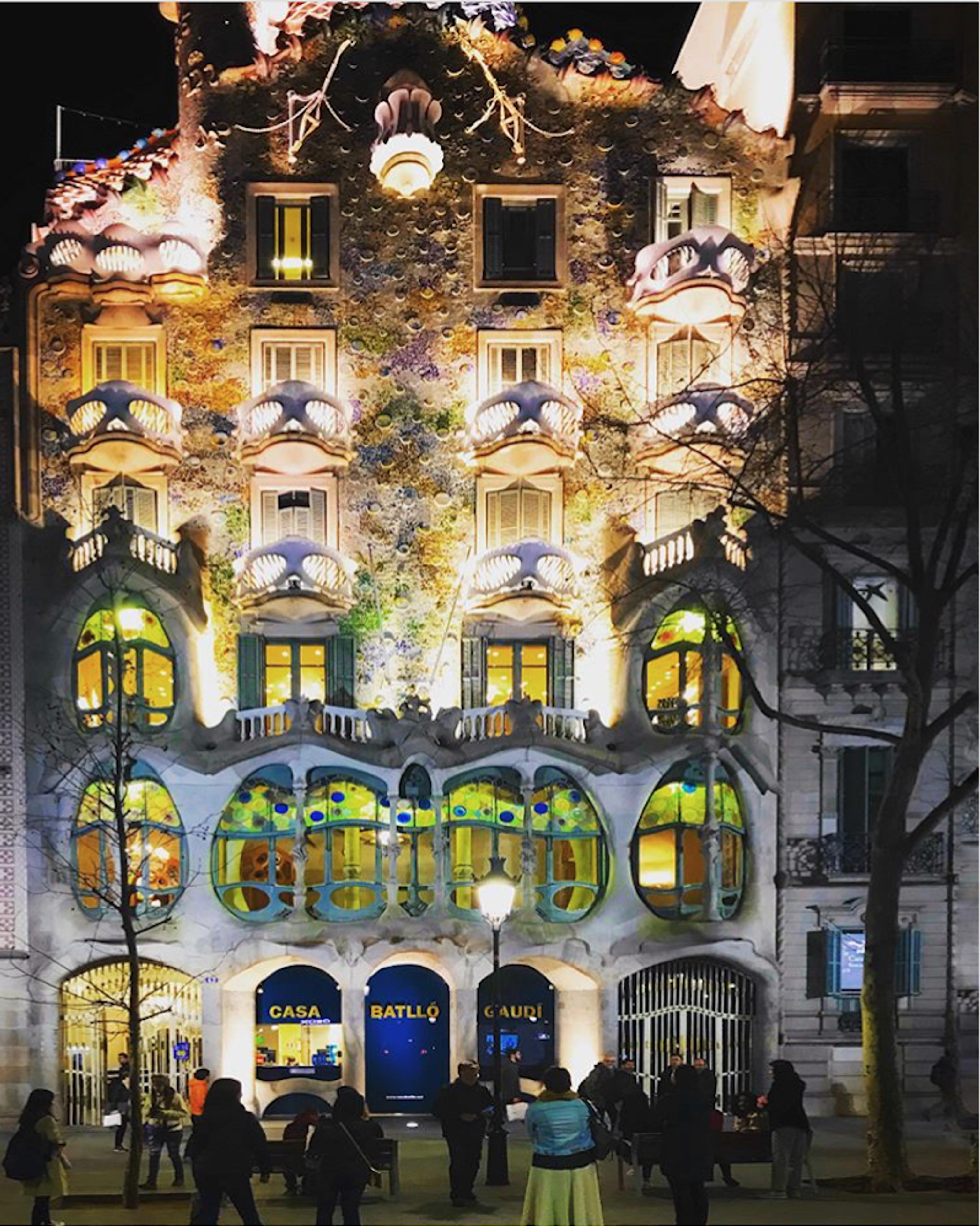 Y tras contemplar la belleza de algunas casas residenciales de la parte alta, volvimos hacia el Paseo de Gracia. Allí los flashes de las cámaras y teléfonos móviles de los instagramers iluminaban sin cesar la conocida “manzana de la discordia”. Difícilmente se pueda encontrar una mayor concentración de belleza arquitectónica como la que atesoran, en conjunto y de forma individual, la Casa Lleó i Morera, la Casa Amatller y la Casa Batlló. Modernismo en estado puro. Gaudí, Domènech i Montaner y Puig i Cadafalch codo con codo. O mejor dicho, ladrillo con ladrillo, ya que los tres máximos exponentes del Modernismo coincidieron en tiempo y espacio con tres de sus principales creaciones.