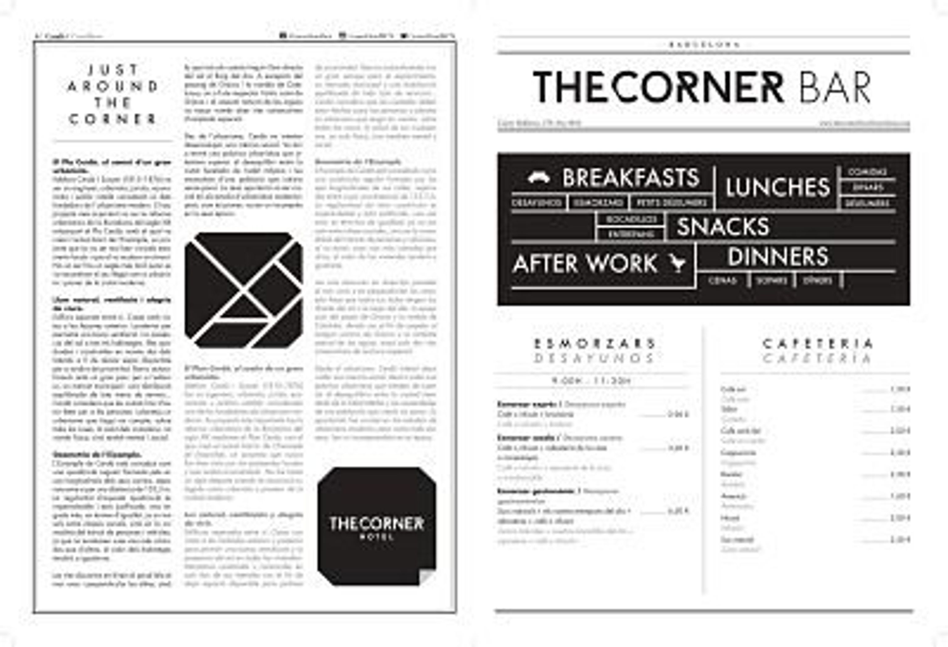 Ubicado en el corazón del Eixample, el hotel llama la atención de sus usuarios ya desde la misma entrada, con un hall abierto y luminoso que sirve de punto de reunión para huéspedes y residentes en Barcelona. Allí, en la planta baja del hotel encuentran el Hall & Lounge, un lugar en el que disfrutar del primer café, tomar un almuerzo ligero o el último aperitivo de la tarde en un entorno donde conectar, reunirse o simplemente relajarse y descansar después de un intenso día en la ciudad condal. Gracias a su estratégico enclave, The Corner Hotel puede ser el punto de partida para descubrir una Barcelona diferente, alejada de los grandes landscape, pero que estamos convencidos que les dejará un gran sabor de boca.